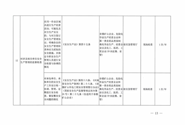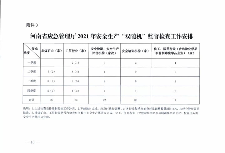 近日,河南省應(yīng)急管理廳發(fā)布《關(guān)于印發(fā)2021年安全生產(chǎn)“雙隨機(jī)一公開(kāi)”監(jiān)督檢查實(shí)施方案的通知》,即日起至2021年12月31日,河南省應(yīng)急管理廳將按照“分級(jí)分類、屬地監(jiān)管”的原則對(duì)全省各行業(yè)開(kāi)展隨機(jī)抽查。
